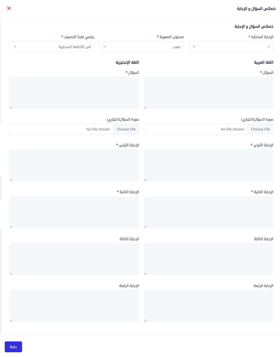 من خلال هذا النموذج، يمكن إضافة سؤال جديد يدويًا من خلال تعبئة الحقول التالية: