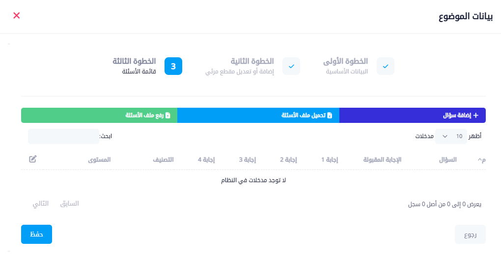 الخطوة الثالثة: إدارة الأسئلة الخاصة بالموضوع