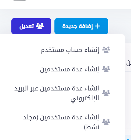 في هذا التبويب، يمكن لمدير النظام تنفيذ مجموعة من العمليات الإدارية الخاصة بالمستخدمين في نظام روّام، مثل: