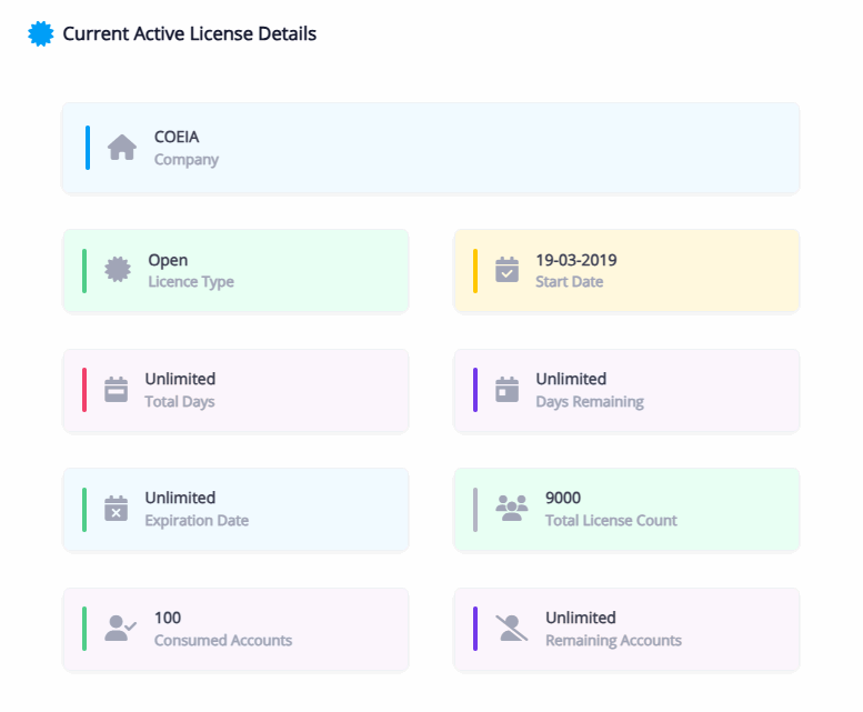 This page helps ensure that the platform is used in compliance with licensing terms and supports timely actions such as renewal or expansion.